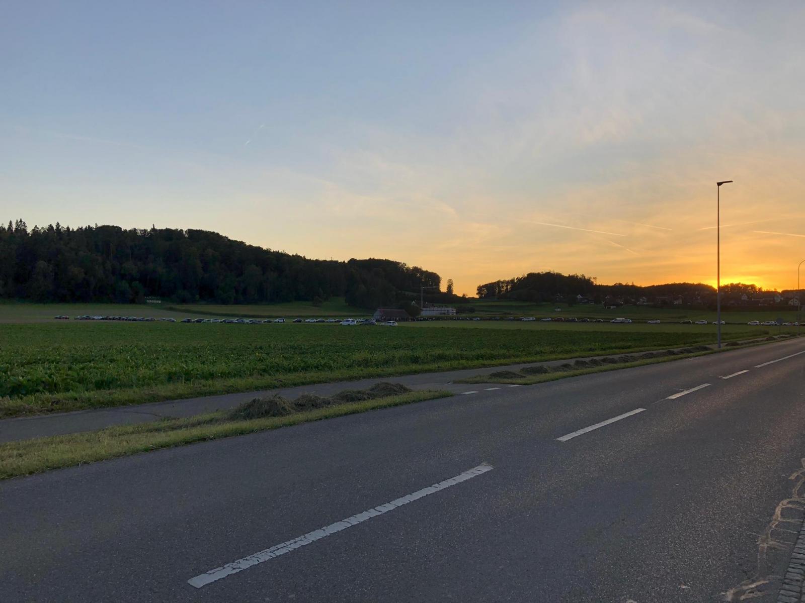Das erste Bild wurden um kurz nach 18:00 aufgenommen. Nicht zu sehen ist, dass sich jederzeit auch bei der Standblatt-Ausgabe und im Schiessstand nochmal weitere Schützen aufhielten! Dieses Video zeigt um die Situation um das Schützenhaus (18:30). Selbst um 19:00 als sich die Sonne mit einem schönen Abendhimmel verabschiedete, kamen immer noch Schützen auf den Platz. Jeder mögliche Platz wurde mittlerweile als Parkplatz verwendet. Nicht wenige wichen sogar auf den Schulhaus-Parkplatz aus! Selbst mit dem Zug reisten Schützen an!